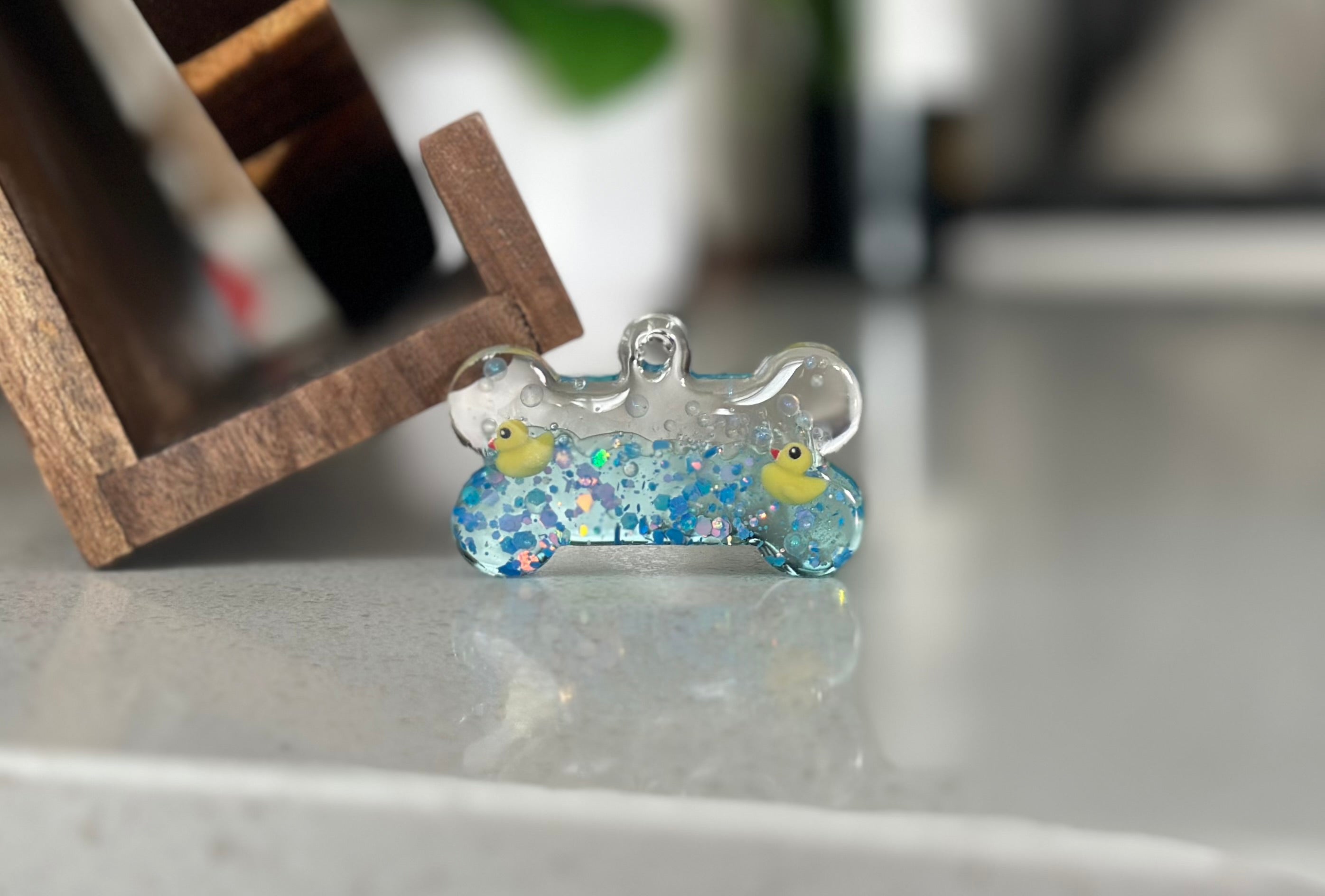Custom Glitter Resin Dog Bone Name Tag - Sparkly Pet ID