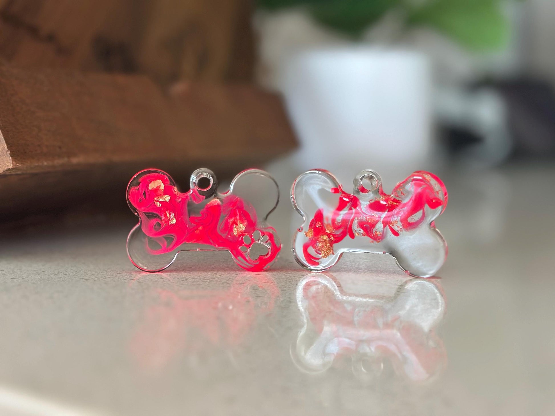 Add a pop of style to your pet’s collar with this handmade resin bone pet tag!